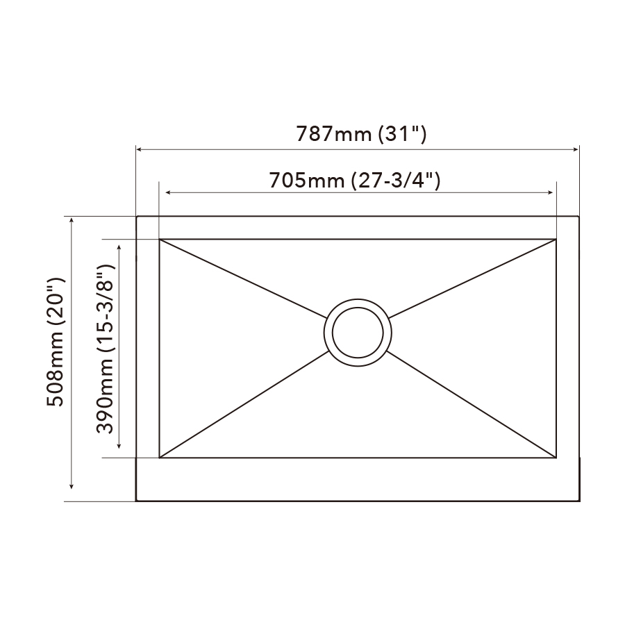 | Bowl dimension | 705mm (27-3/4") x 390mm (15-3/8") |