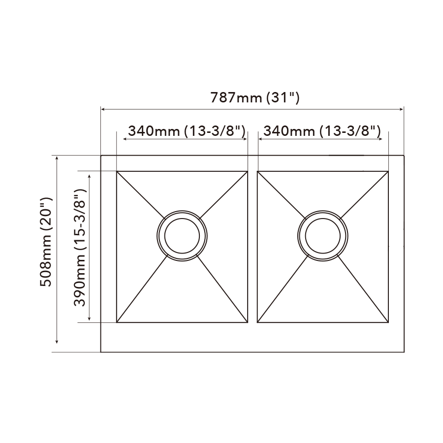 | Bowl dimension | 340mm (13-3/8") x 340mm (13-3/8") |