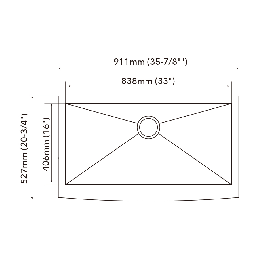 | Bowl dimension | 838mm (33") x 406mm (16") |