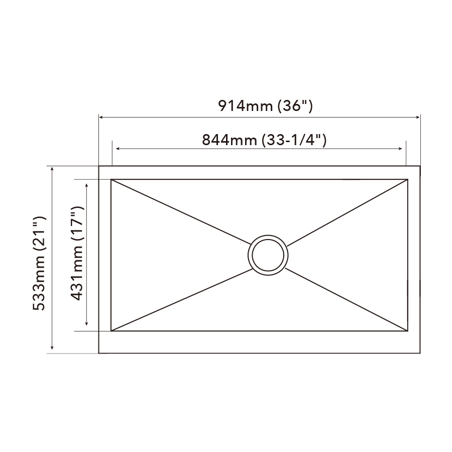 | Bowl dimension | 844mm (33-1/4") x 431mm (17") |