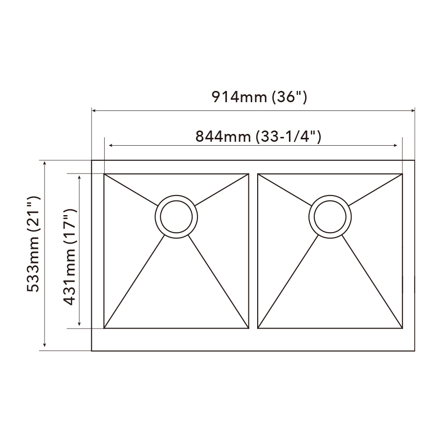 Bowl dimension 844mm (33-1/4") x 431mm (17")