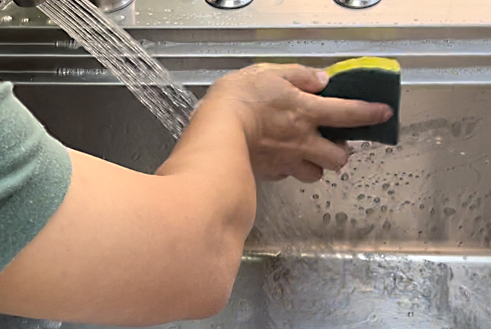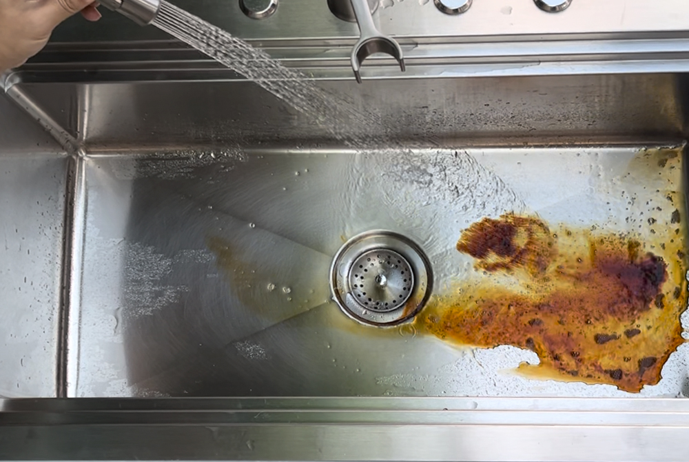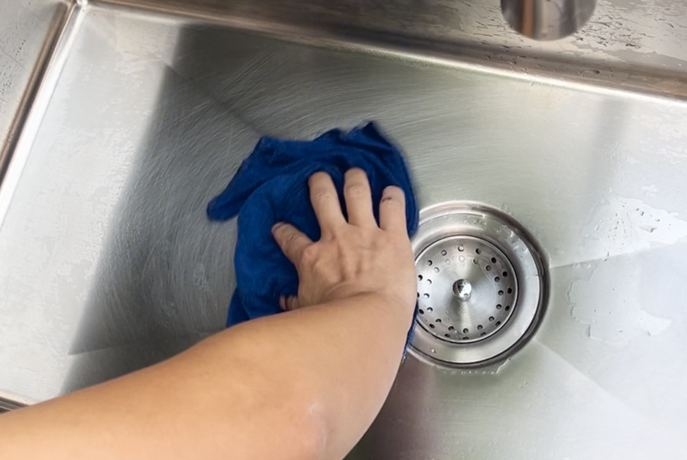 After scrubbing, rinse the sink thoroughly with warm water to remove any residual cleaning agents or particles
