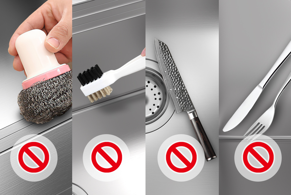 To avoid using these tools, as scratches or other damages might cause the sink to rust