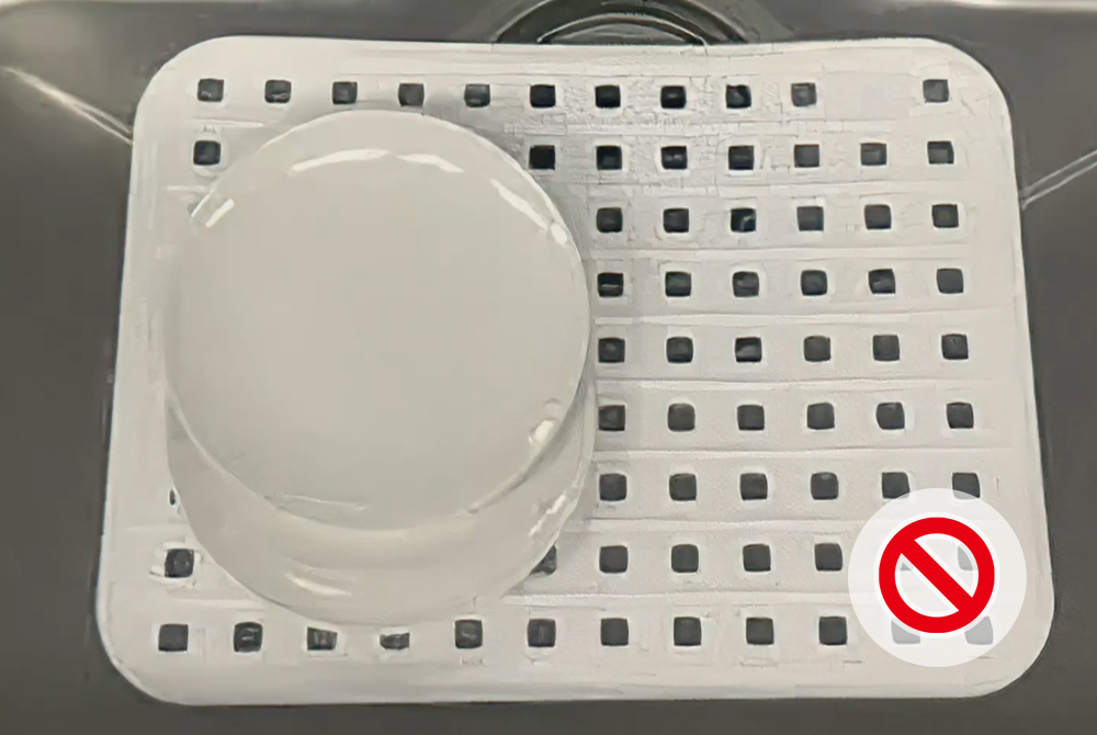 2. DO NOT allow dish mats, rubber mats, wet sponges, steel or iron cookware in the sink for extended periods sit in the sink;