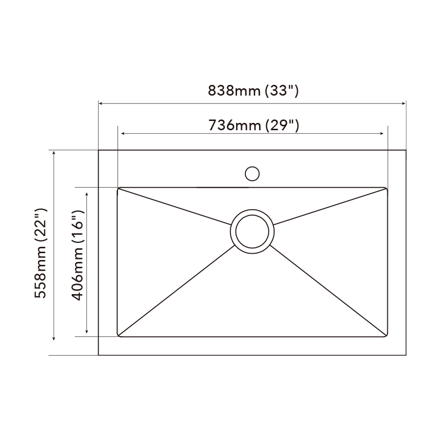 | Bowl dimension | 736mm (29") x 406mm (16") |