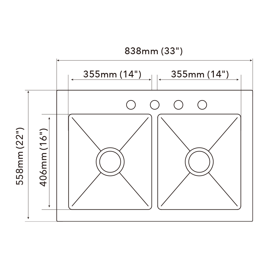| Overall dimension | 838mm (33") x 558mm (22") |