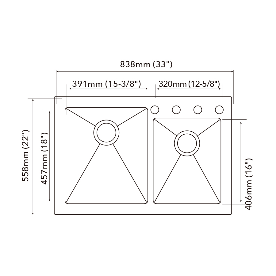 | Bowl dimension | 391mm (15-3/8") x 320mm (12-5/8") |