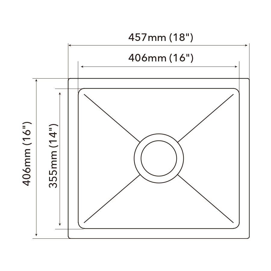 | Bowl dimension | 406mm (16") x 355mm (14") |