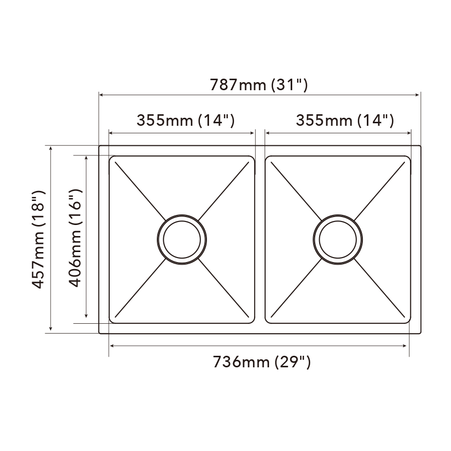 | Overall dimension | 787mm (31") x 457mm (18") |