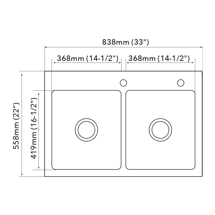 | Bowl dimension | 368mm (14-1/2") x 368mm (14-1/2") |