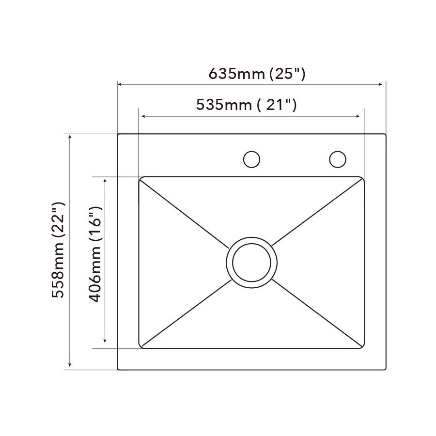 | Bowl dimension | 535mm (21") x 406mm (16") |