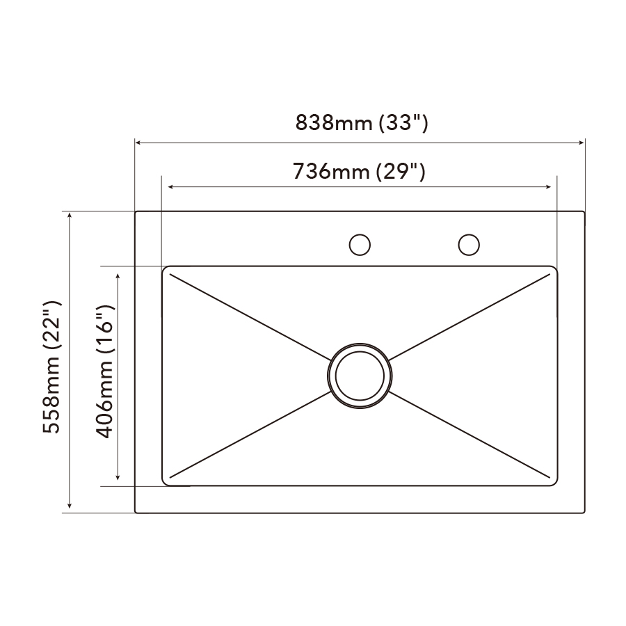| Bowl dimension | 736mm (29") x 406mm (16") |