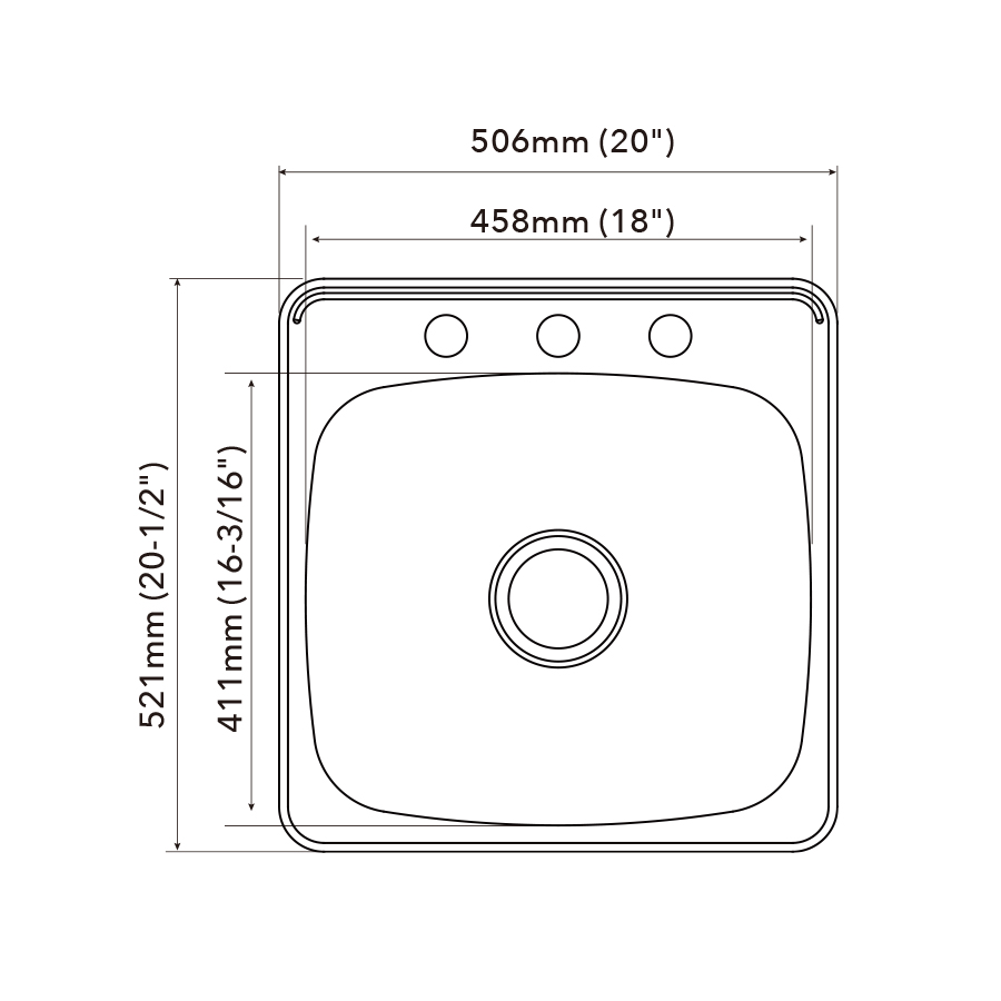 | Bowl dimension | 458mm (18") x 411mm (16-3/16") |