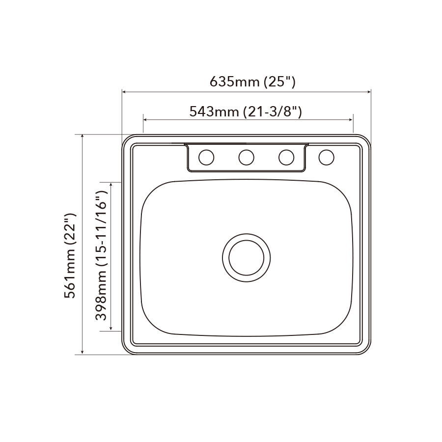 | Bowl dimension | 543mm (21-3/8") x 398mm (15-11/16") |