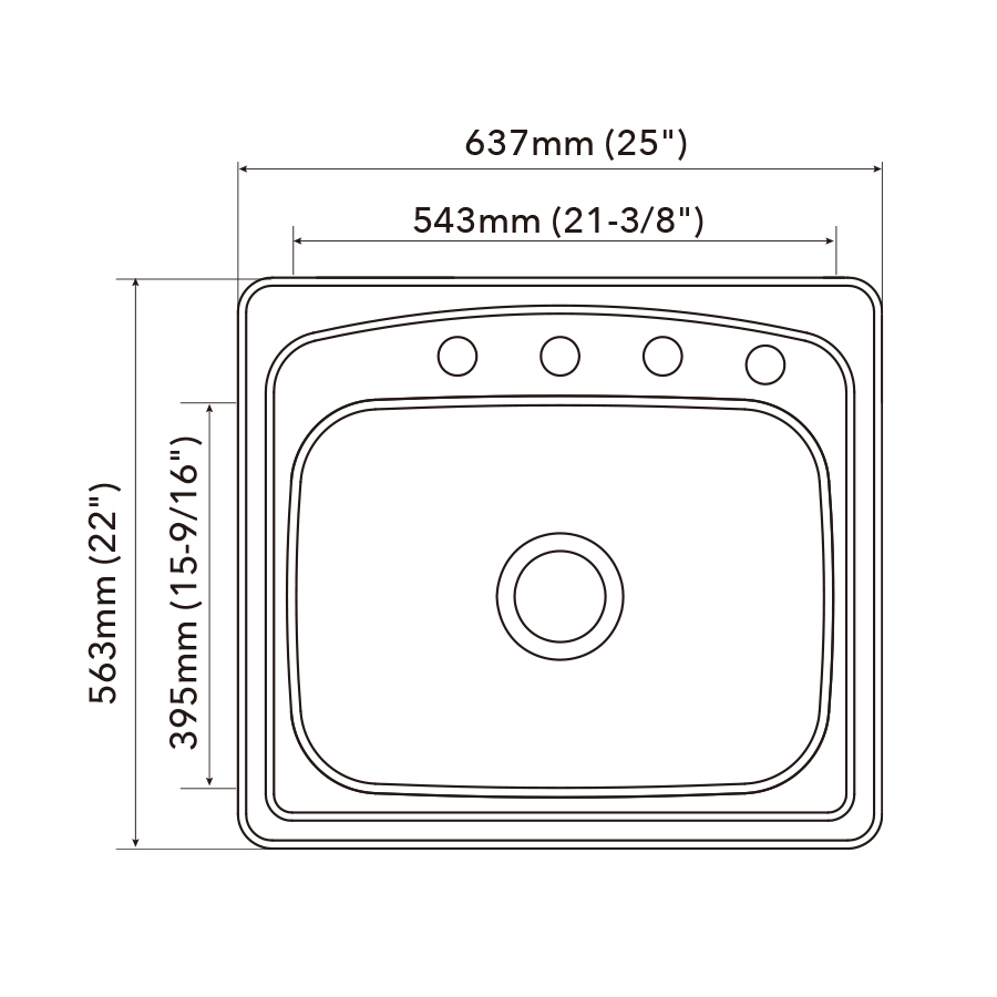 | Bowl dimension | 543mm (21-3/8") x 395mm (15-9/16") |