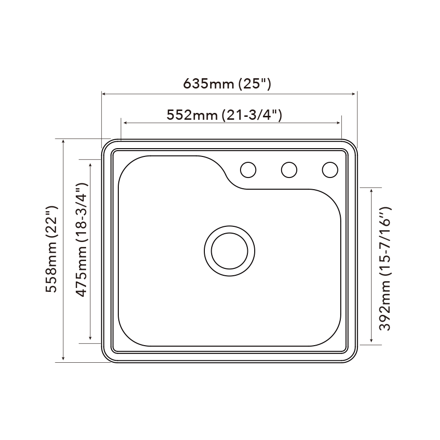 | Bowl dimension | 552mm (21-3/4") x 475mm (18-3/4") |