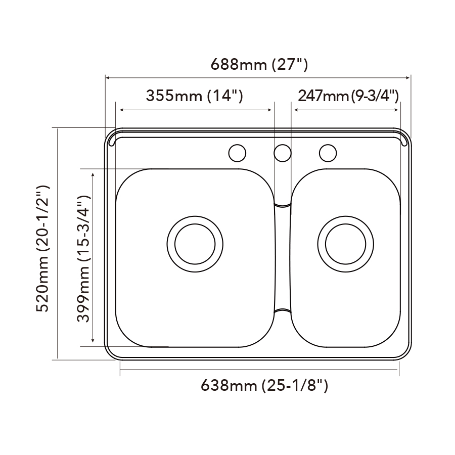 | Bowl dimension | 355mm (14") x 399mm (15-3/4") / 247mm (9-3/4") x 399mm (15-3/4") |