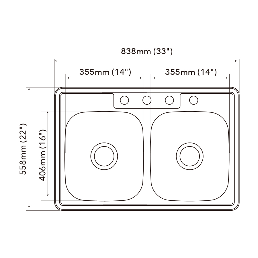 | Overall dimension | 838mm (33") x 558mm (22") |