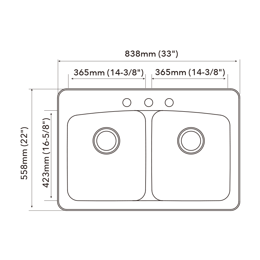 | Overall dimension | 838mm (33") x 558mm (22") |