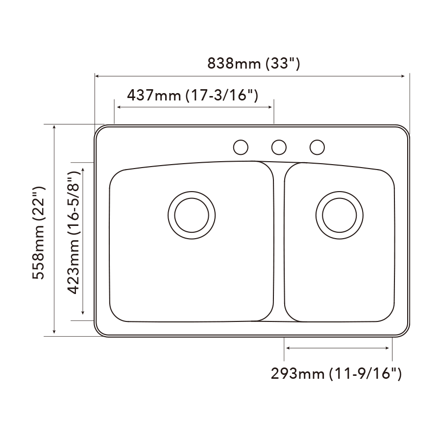 | Bowl dimension | 437mm (17-3/16") x 423mm (16-5/8") / 293mm (11-9/16") x 423mm (16-5/8") |
