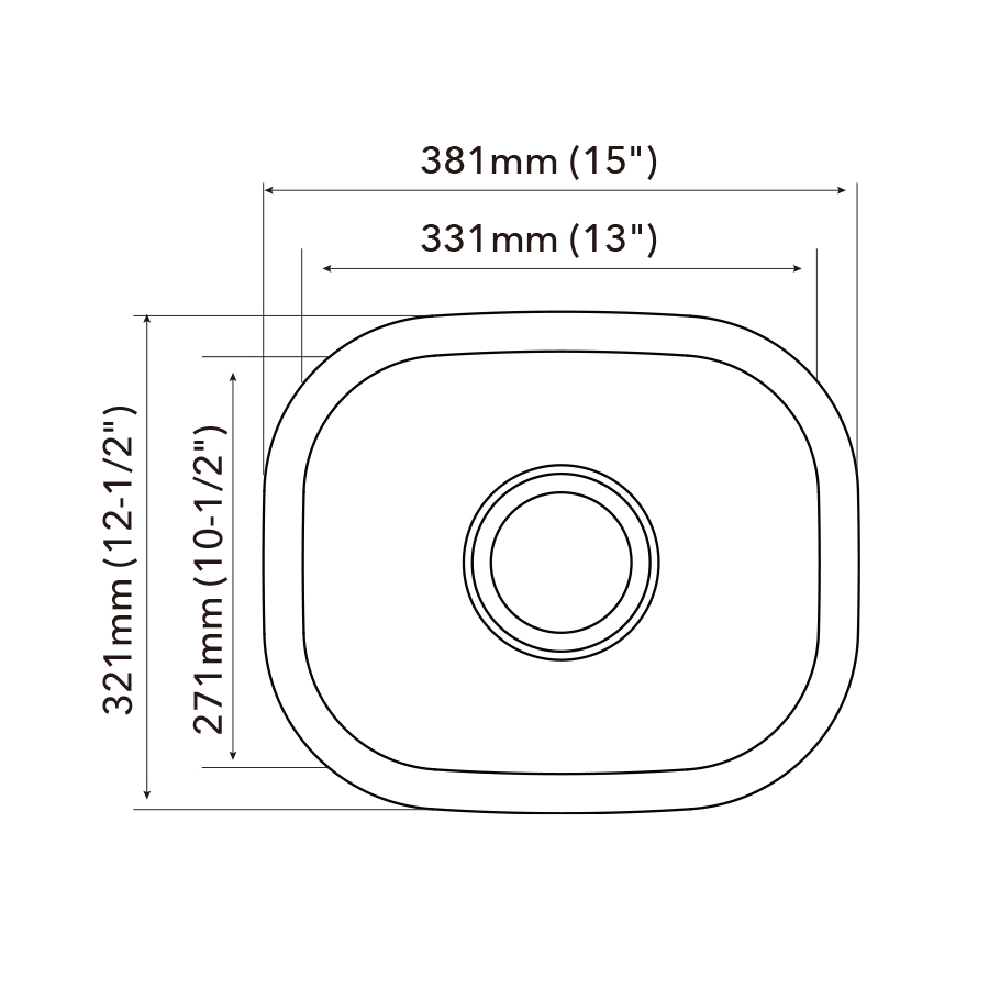 | Overall dimension | 381mm (15") x 321mm (12-1/2") |