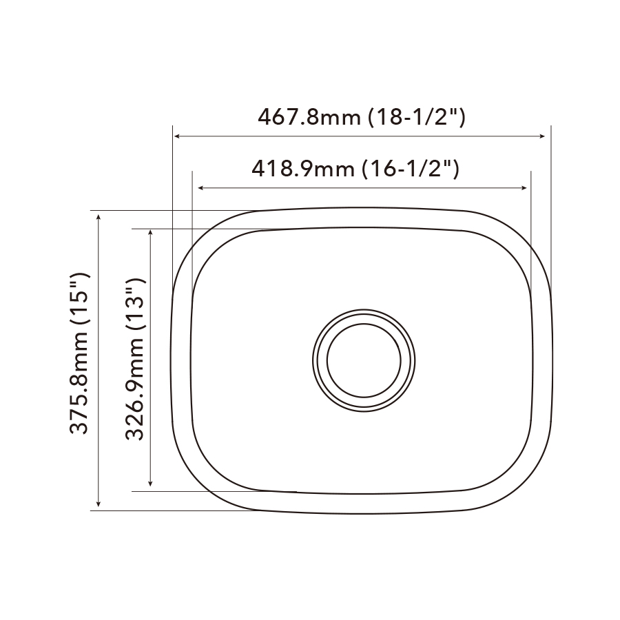 | Bowl dimension | 419mm (16-1/2") x 326mm (13") |