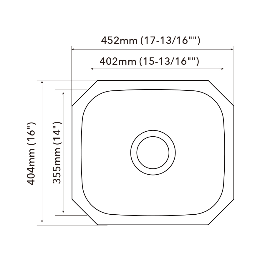 | Bowl dimension | 468mm (18-1/2") x 376mm (15") |