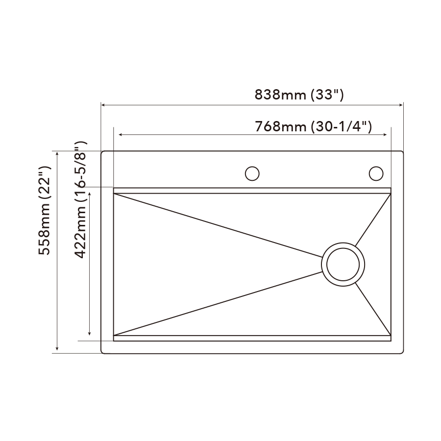 | Bowl dimension | 768mm (30-1/4") x 422mm (16-5/8") |