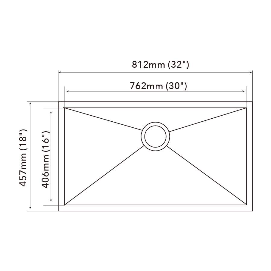 | Bowl dimension | 762mm (30") x 406mm (16") |