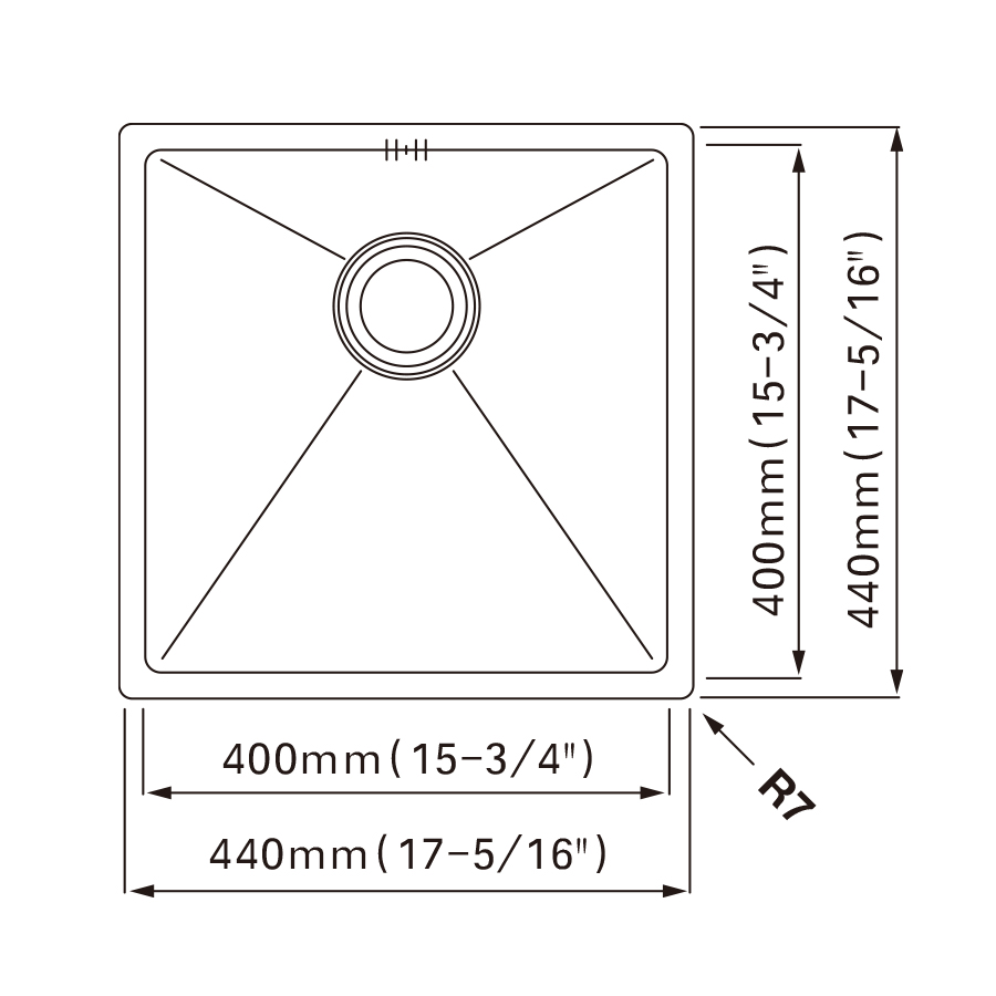 Bowl dimension 400mm(15-3/4") x 400mm(15-3/4")